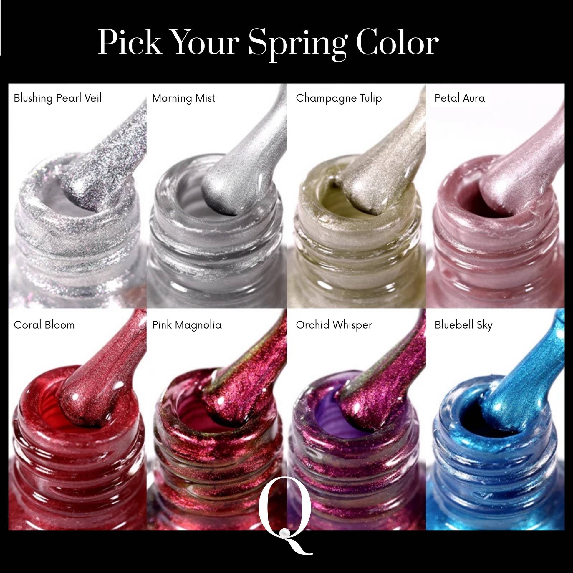 Available in 8 luminous shades, from soft pearl silvers to dreamy pinks and ocean blues — each designed to pair beautifully with your Pearl Queen bases and stickers.
